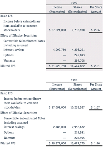 computation of Diluted EPS for the years ended December 31, 1999,