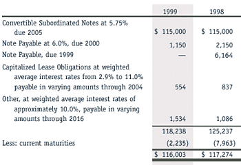 the following amounts as of December 31, 1999 and 1998 (in thousands):