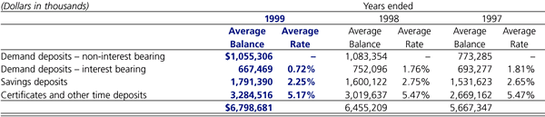 deposits comprised 25.3% of average deposits in 1999 compared with