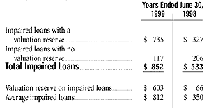 The principal balance at June 30, 1999 and 1998, on these restructured
