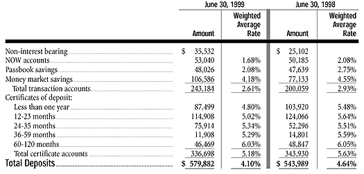 At June 30, 1999 and 1998, certificates of deposit in amounts of