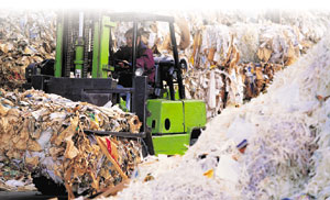 An excellent example of Caraustar's ability to furnish its mills with low-cost fiber is Chattanooga Paperboard, where approximately 35 percent of the fiber used is received loose at a savings of over $30 per ton.