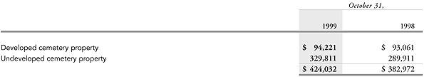 The Company evaluates the recoverability of the cost of undeveloped cemetery property through comparison with undiscounted expected future cash flows.