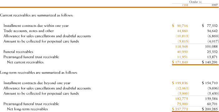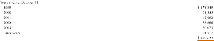 The Company's receivables as of October 31, 1998 are expected to mature as follows: