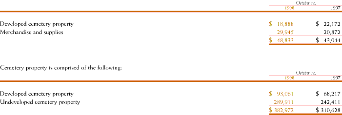 Inventories are comprised of the following:The Company evaluates the recoverability of the cost of undeveloped cemetery property through comparison with undiscounted expected future cash flows.