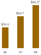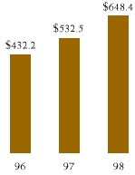 ![]() TOTAL REVENUES (In millions) Reflects changes in the Company's accounting methods effective November 1, 1996. |