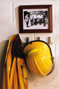 Christopher Gray, assistant fire chief, on far right, and fellow