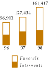 - Improved Services - Proud Founded in 1910, Stewart has had nearly nine decades of experience. Throughout those decades, one of the core principles we have adhered to has been respect for tradition. And yet, because the needs of families are ever-changing, we are continually learning new ways to deliver services. Doing both -- upholding traditions and developing new initiatives -- enables us to serve families better and to position our company for future growth. In fiscal 1998, we served more than 190,000 families -- 40,000 more than the year before (on an annualized basis). In this report, we discuss why we have been successful and how we will build on that success in the future. The fact that death is inevitable is basic to our society and our business. In the United States, according to Census Bureau projections, the number of deaths will increase steadily. For example, 2.3 million deaths occurred in 1995, and 2.6 million are projected for 2010. Additionally, the segment of the population over 50 years of age, which is our primary target audience, numbered 68 million in 1995 but is projected to be 96 million in 2010. When death occurs, families will turn to someone in our industry to meet their needs. Our mission is to be the company of choice for as many families as possible, and to offer them an unparalleled range of quality products and services. Better Service Through Global Growth At the end of fiscal 1998, we operated 558 funeral homes and 140 cemeteries in 148 markets around the world. Included in those numbers are a new cemetery we developed and five funeral homes (two stand-alone facilities plus three located on cemetery grounds) we constructed last year, in addition to the 162 funeral homes and cemeteries we purchased. In seeking out and evaluating potential acquisitions, we consider a range of criteria, but four are especially important -- the quality and prestige of the business; the probability of retaining management; the potential for combined facilities and market clustering; and the acquired business's ability to contribute to Company earnings during the first 12 months. A good reputation is crucial in our business. When we purchase a firm, we acquire its reputation -- its name on the door, loyal employees, long-standing community relationships and traditions. A good reputation is an indicator that the firm is being managed by people who share our commitment to quality, service and value. Consequently, retention of the established management and staff ensures that the business will continue its high level of personal service. In evaluating a cemetery business, we consider as well the potential to construct a funeral home on the cemetery's grounds. We have found that this kind of combined operation builds market share for both the new funeral home and the established cemetery. The funeral home immediately becomes a resource for the cemetery's existing base of families, and both facilities become more attractive to new customers who desire the convenience of comprehensive services in one location. Stewart has been an industry leader in developing combination operations. A total of 45% of our cemeteries now operate as combinations. In fiscal 1998, we established three new combination facilities in the United States, maintaining our annual program of building three new funeral homes at existing cemeteries. Market clustering -- operating multiple businesses that are close to one another geographically -- has long been an important part of our acquisition strategy. Clustering enables us to increase operating efficiencies through the sharing of personnel, equipment and other resources; it also produces economies of scale that help us to negotiate more favorable contracts with suppliers. The favorable acquisition climate has continued into 1999. Thus far, we have acquired or made a commitment to acquire 102 businesses in seven countries at a cost of $237.7 million. These new acquisitions, which serve 26,000 families, are expected to add $98.0 million in revenue annually. A Caring Staff, 10,600 Strong For example, in France, the former owner of our newly acquired firm of 36 funeral facilities continues with us as chief operating officer for all of our operations in that country. He reports to our recently established European headquarters located in the Netherlands. Managing local firms with local people is vital in serving communities well, since customs vary greatly from country to country and, within a country, from market to market. All of our employees are dedicated, caring and knowledgeable about the areas in which they serve. We can rely on them to continue delivering quality service to families in their communities. In addition, we constantly help our employees to improve themselves. Not only do we encourage them to pursue further professional development, but we also continually look for new and better ways of recognizing them for their efforts -- from improved benefit packages to financial incentive programs. Added Convenience for Families Stewart has been offering prearrangements for almost a half-century, longer than our major competitors have been in business. Prearranging is planning today for tomorrow's funeral and cemetery needs. This approach gives families the assurance of knowing that they have been able to make carefully considered decisions, and it also helps them avoid unnecessary confusion and financial difficulties later, during an emotionally stressful time. At the close of our fiscal year, our backlog of prearranged funeral services exceeded 397,000 services and represented more than $1.3 billion in future revenue. Over the four elapsed years ending October 31, 1998, our backlog has grown at a compounded annual rate of 21%. Improved Services and Products The first internal growth strategy involves the alternative-services-firm concept, which addresses the growing cremation market. The Cremation Association of North America reported that U.S. crematio