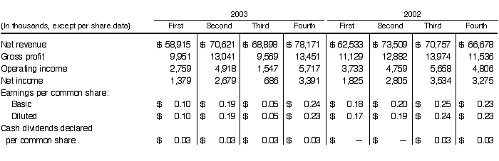 NOTE 16. QUARTERLY FINANCIAL INFORMATION (UNAUDITED) The following is an analysis of certain items in the consolidated income statements by quarter for the years ended December 31, 2003 and 2002: