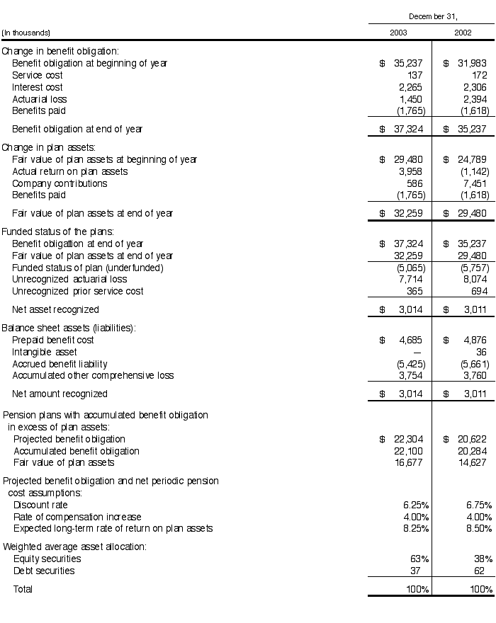 determining net periodic pension cost for 2003 and 2002 were chosen by