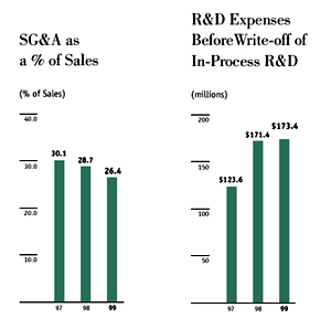 respectively, and 2) a one time write-off of $282.0 of acquired in-process