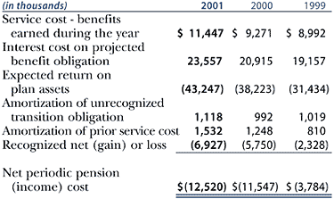 Total pension (income) expense in 2001, 2000, and 1999 was $(10,613,000),