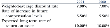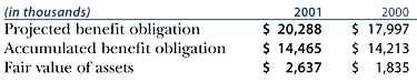 of the funded status at December 31, 2001 and 2000, are as follows: