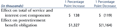 on the amounts reported. A one-percentage point change in assumed