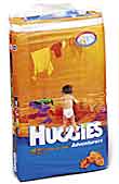The eye-catching graphics on this diaper package are used to market this product in Europe.