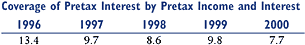coverage was 7.7 times in 2000 compared to 9.8 times in 1999 and 8.6 times