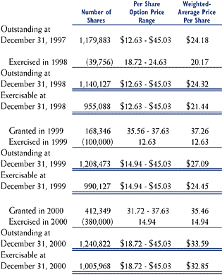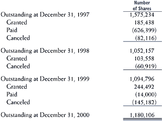 common stock to key employees. As of December 31, 2000, 1999, and 1998,