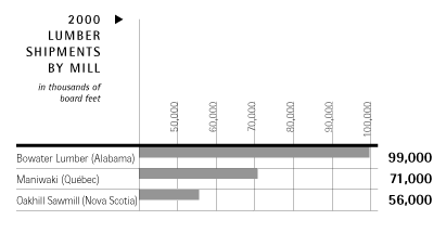 The Forest Products Division manages 1.8 million acres of timberlands owned or leased by Bowater in the United States and Canada and 14.1 million acres of timber management rights in Canada. It sells timber and lumber and supplies wood fiber to various manufacturing facilities including Bowaters pulp and paper mills. The Division also operates three softwood sawmills.