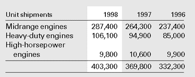 truck engine revenues were 19 percent higher than in 1997 on