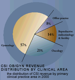 as a source of preferred products. MEETING CUSTOMER NEEDS WITH A MULTIPLE SITE, MULTIPLE PRODUCT STRATEGY CSI markets a diversified product mix in a variety of clinical settings. The product line contains more than 2,100 offerings. In 2000, 51 percent of CSI's Ob/Gyn revenue was generated in the office setting, 38 percent in the hospital and 11 percent in fertility clinics. About 60 percent of CSI's products are disposable. For optimal market coverage, CSI employs a direct sales force of 28 representatives, 7 independent sales representatives, catalogs and other direct marketing programs, including a business-to-business e-commerce site (www.cooopersurgical.com) for physicians and hospitals.