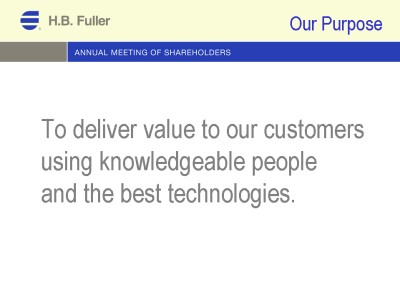 IN THE PROCESS OF REVISITING AND VALIDATING OUR STRATEGY WE DEFINED OUR PURPOSE, OR REASON FOR BEING, AS:
