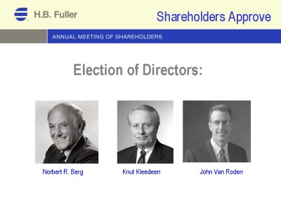 NORBERT BERG, KNUT KLEEDEHN AND JOHN VAN RODEN HAVE BEEN ELECTED TO THE BOARD OF DIRECTORS.