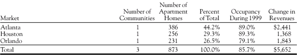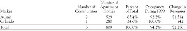 revenues of $2,929 in 1999, primarily related to the Gables Residential