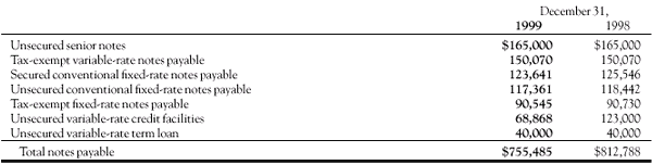31, 1999 and 1998, the fixed-rate notes payable were comprised