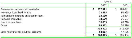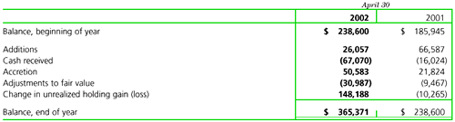 of MSRs at April 30, 2002, 2001 and 2000 was $81,893, $61,796