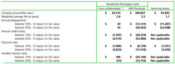 the residuals and MSRs to 10% and 20% adverse changes in the