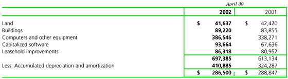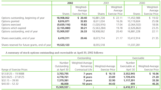 in other noncurrent liabilities at April 30, 2002 and 2001