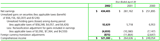 at April 30, 2002 and 2001, the net unrealized holding gain