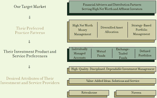 Our primary focus remains on those advisers who work with investors seeking to sustain wealth for themselves and their families. We have found that our individual managed account services at Rittenhouse and Nuveen Asset Management are attractive particularly to advisers working with clients with between $1 million and $10 million to invest. Our mutual funds and defined portfolios are focused primarily on helping advisers serve the needs of those with investment portfolios averaging more than $250,000.
