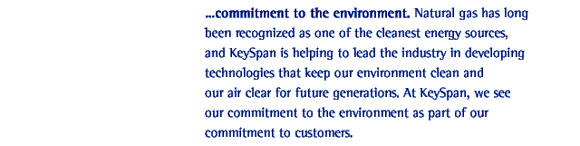 At KeySpan, we continually strive to find creative solutions to our changing environmental challenges in our core gas business, in our electric generating facilities, and in new technologies. |