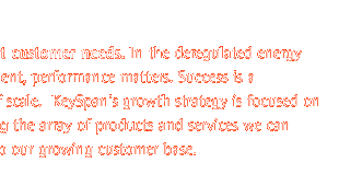 With our refocused strategy, KeySpan enters the new millennium with our priorities clearly defined. We have grown our core, regulated businesses through mergers and acquisitions of gas and electric companies, we are building the unregulated businesses through acquisitions and strategic alliances, and will maximize the assets we already own through integrated marketing programs.
