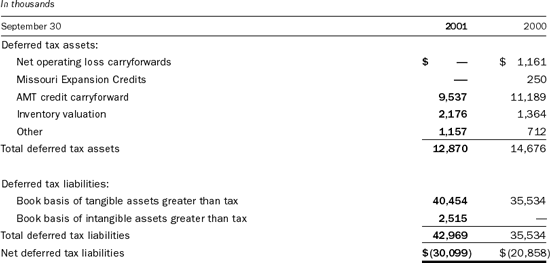 Income Taxes The Company has AMT credit carryforwards of $9,537,000 and $11,189,000 at September 30, 2001 and 2000, respectively, with no expiration date. Management believes it is more likely than not that deferred tax assets associated with these items will be realized through the generation of future taxable income and available tax planning strategies. |
