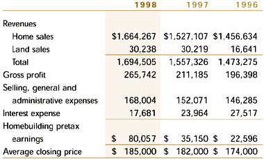 Gross profit margins from home sales averaged 15.9 percent for the year 1998, a
