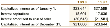 December 31, 1998, and $3.0 million at December 31, 1997. The net carrying value of the