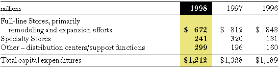 The Company plans capital expenditures of $1.2 billion for 1999, which includes remodeling