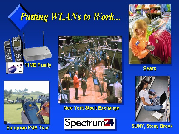 Symbol has (under one roof) the ability to deliver WLAN access points (radio receiver / transmitters), handheld and wearable computing devices equipped with WLAN radios and aggressive laser-based scan engines, and wireless network systems services, all of which provide a complete mobile enterprise fabric for our customers … one stop shopping !