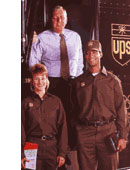 Customers count UPS people like Drivers India Hawkins (left) and Tony Bush as the company's greatest asset. Here they are pictured with Chairman Jim Kelly.