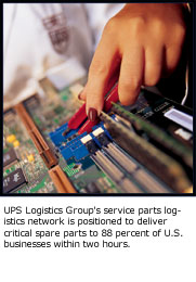 UPS Logistics Group provides global supply chain management for a wide range of companies seeking improvements in capital utilization, asset management, customer service, and speed to market. Its key services – Supply Chain Management, Service Parts Logistics, Transportation Services, and Logistics Technologies – offer a blend of global infrastructure, reengineering and management expertise, and technological innovation. Business grew for UPS Logistics Group in 2000. It posted a 32.4 percent increase in revenue while announcing five key acquisitions around the world, particularly in its service parts logistics segment. Several long-term contracts were also inked with industry-leading firms such as Compaq, Ford, National Semiconductor, and Hewlett-Packard.