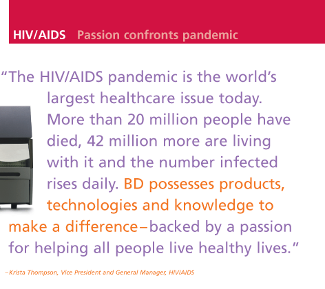 and its role in the battle against HIV/AIDS. First, BD is looking