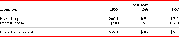 The decrease in interest expense in 1999 was primarily due to the fact that we