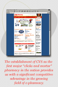 We plan to jointly create an integrated, full-service Internet healthcare offering and make CVS.com the most comprehensive, online destination for healthcare information and pharmacy needs. We will partner to develop new healthcare services and programs to benefit consumers, such as a method for electronically generating, transmitting and billing prescriptions.