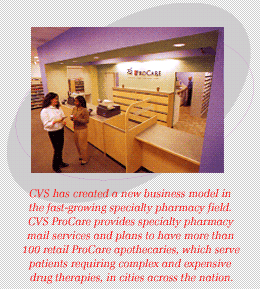 We announced another exciting new business in 1999, CVS ProCare, our specialty pharmacy business that has already established a significant position in this $14 billion, fast-growing segment of the pharmacy market. CVS ProCare services individuals with HIV/AIDS, organ transplants, infertility and those requiring biotechnology-based injectable products for conditions such as multiple sclerosis or growth hormone deficiency. By leveraging our core capabilities and experience with managed care, CVS ProCare is uniquely positioned to support our managed care clients in effectively servicing this customer segment.