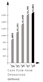 A key to our access to liquidity and capital markets is maintaining strong investment-grade debt ratings. During the year, our long-term debt was upgraded by Moody's and Standard and Poor's. Further liquidity is provided by $1.6 billion of committed lines of credit obtained through a group of 31 banks. Going forward, we expect that continued profit increases and cash flow from operations will allow us to fund our planned capital expenditures and share repurchase while maintaining or improving our debt ratings.
