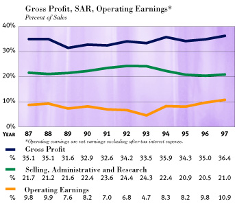 The graph above shows the historical trend of gross profit, selling, administrative and research expenses and operating earnings as a percent of sales.