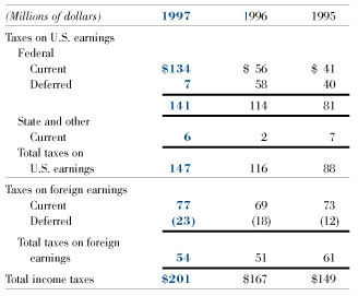 composed of: ![]() Cash payments of income taxes were $181 million, $120 million and $111 million in 1997, 1996 and 1995, respectively. Deferred income taxes reflect
