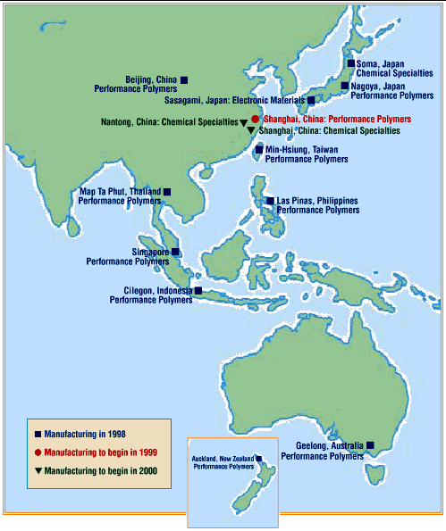 For Rohm and Haas, the most significant impact was on the Specialty Polymers, Electronic Materials and Ion Exchange Resins businesses. Asian overcapacity among producers of paper and adhesives weakened demand for Rohm and Haas's specialty products used in these markets around the world. Electronic Materials, meanwhile, suffered the continued softness in Asia's electronics industry for much of the year. Ion Exchange Resins felt the impact most heavily in Japan, the largest Asian market for its water treatment products.